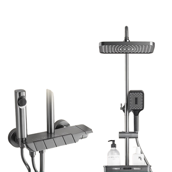 Sistema de ducha de piano de acero inoxidable gris pistola de lujo con mezclador digital de 4 botones